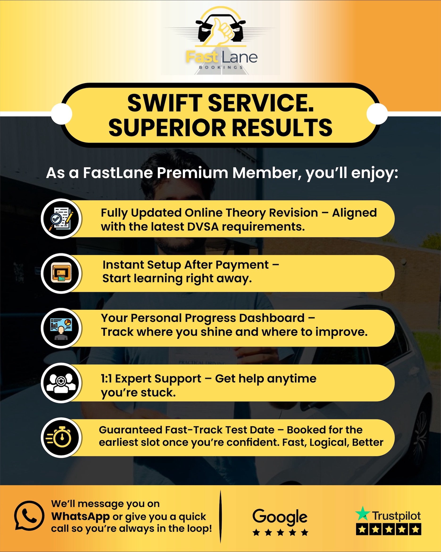 The road to your driving licence should be efficient, stress-free, and tailored to you. With FastLane Premium Test Date Package, you move to the front of the queue and take control of your driving journey.